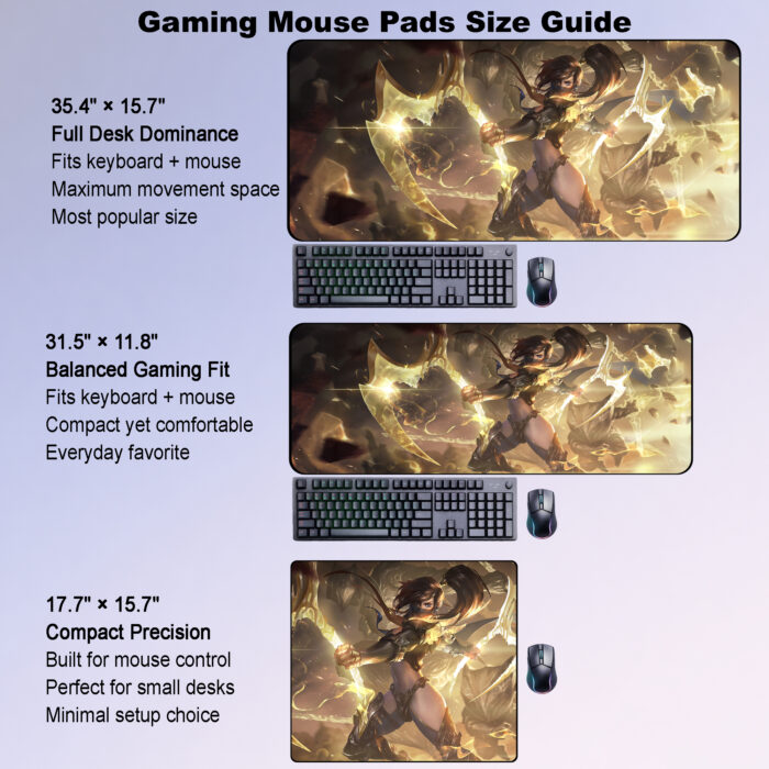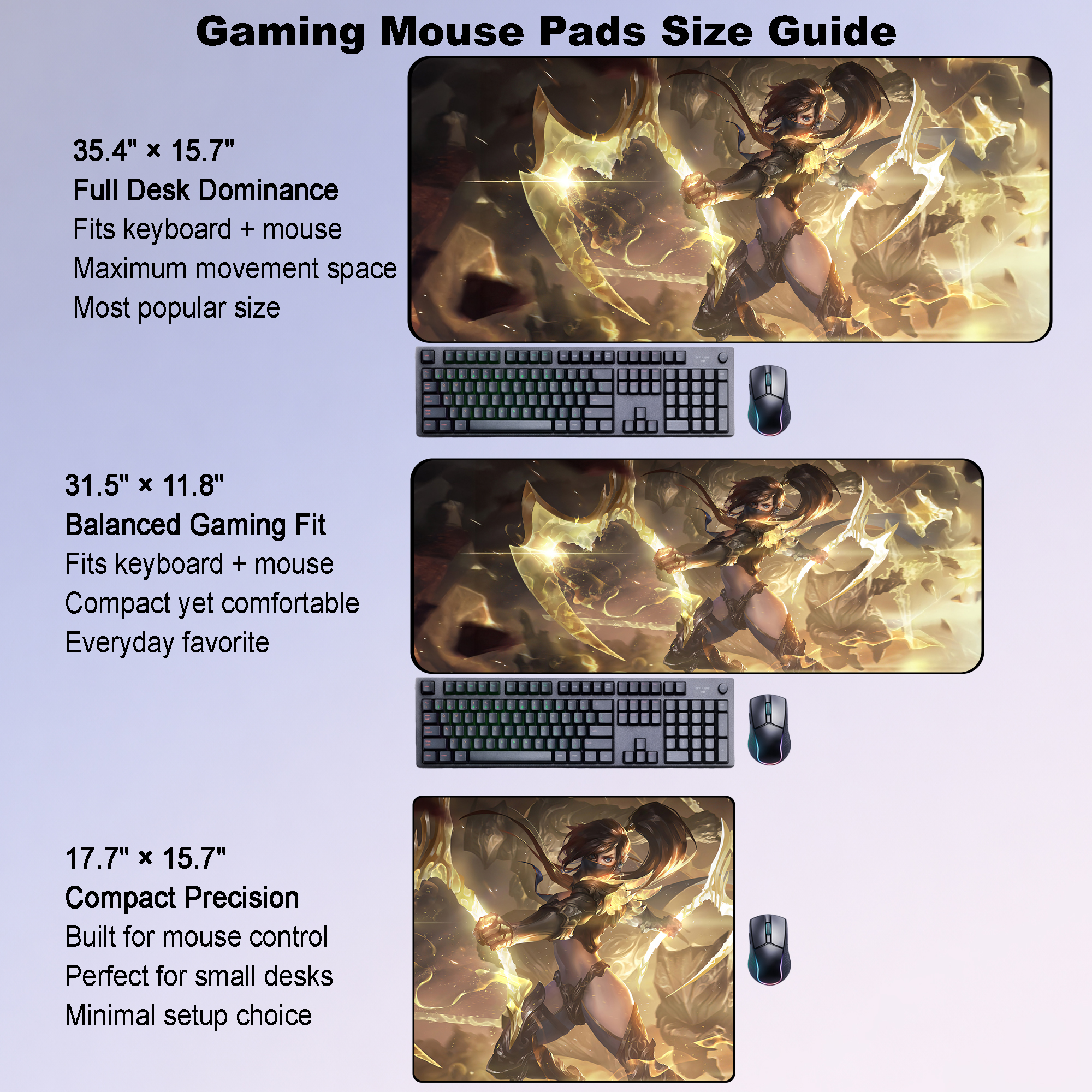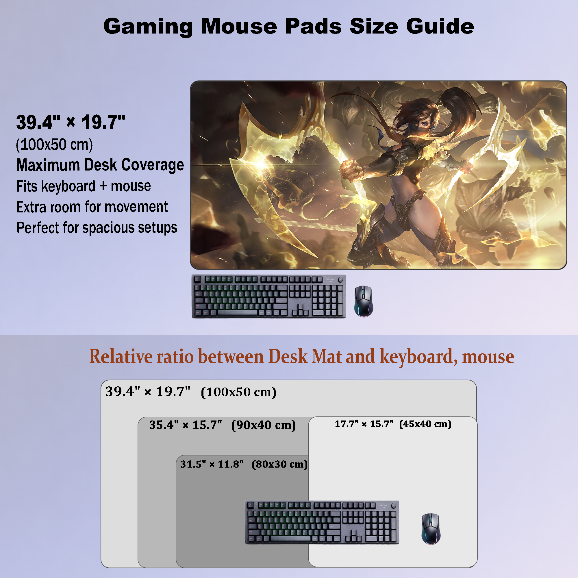 Bring fierce energy to your setup with this Akali-inspired gaming mouse pad. Featuring bold golden effects, dynamic fantasy artwork, and a battle-ready composition, this desk mat adds a powerful League-themed look to any desk.