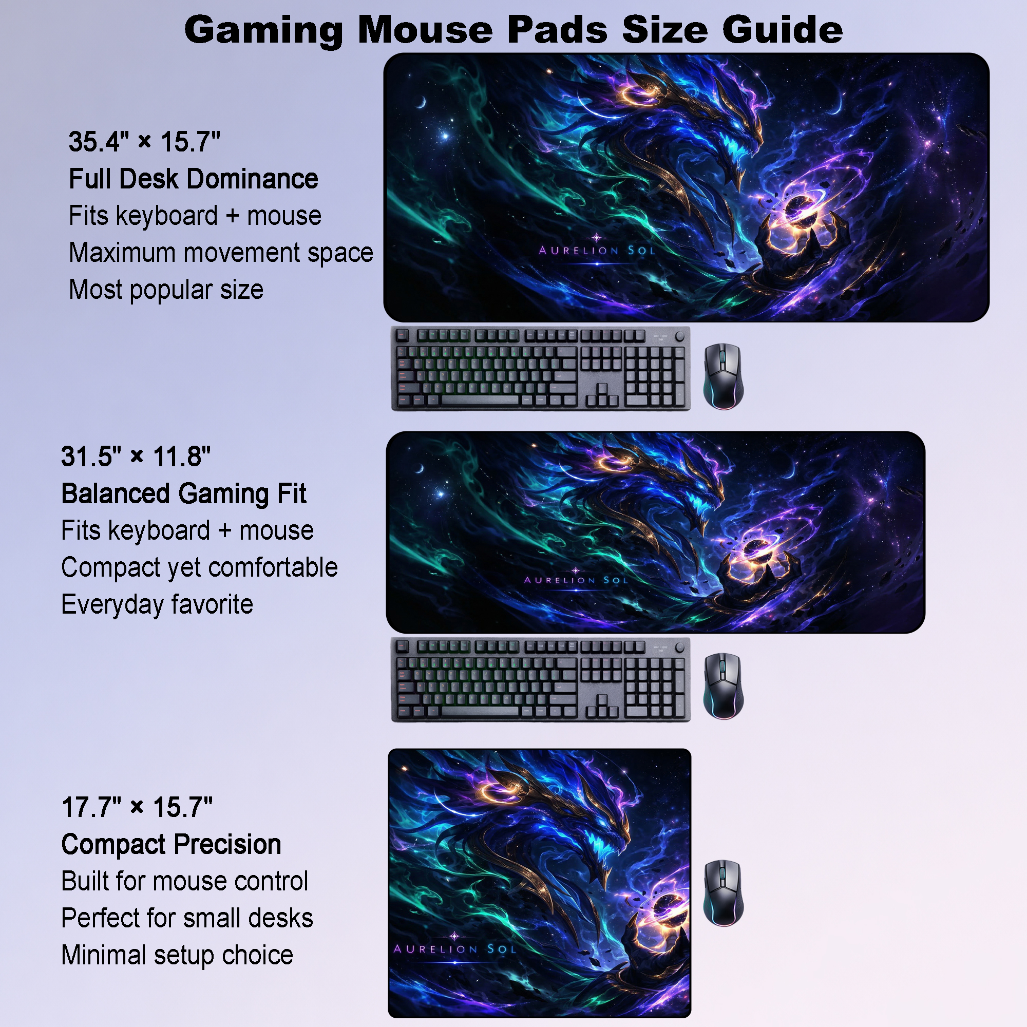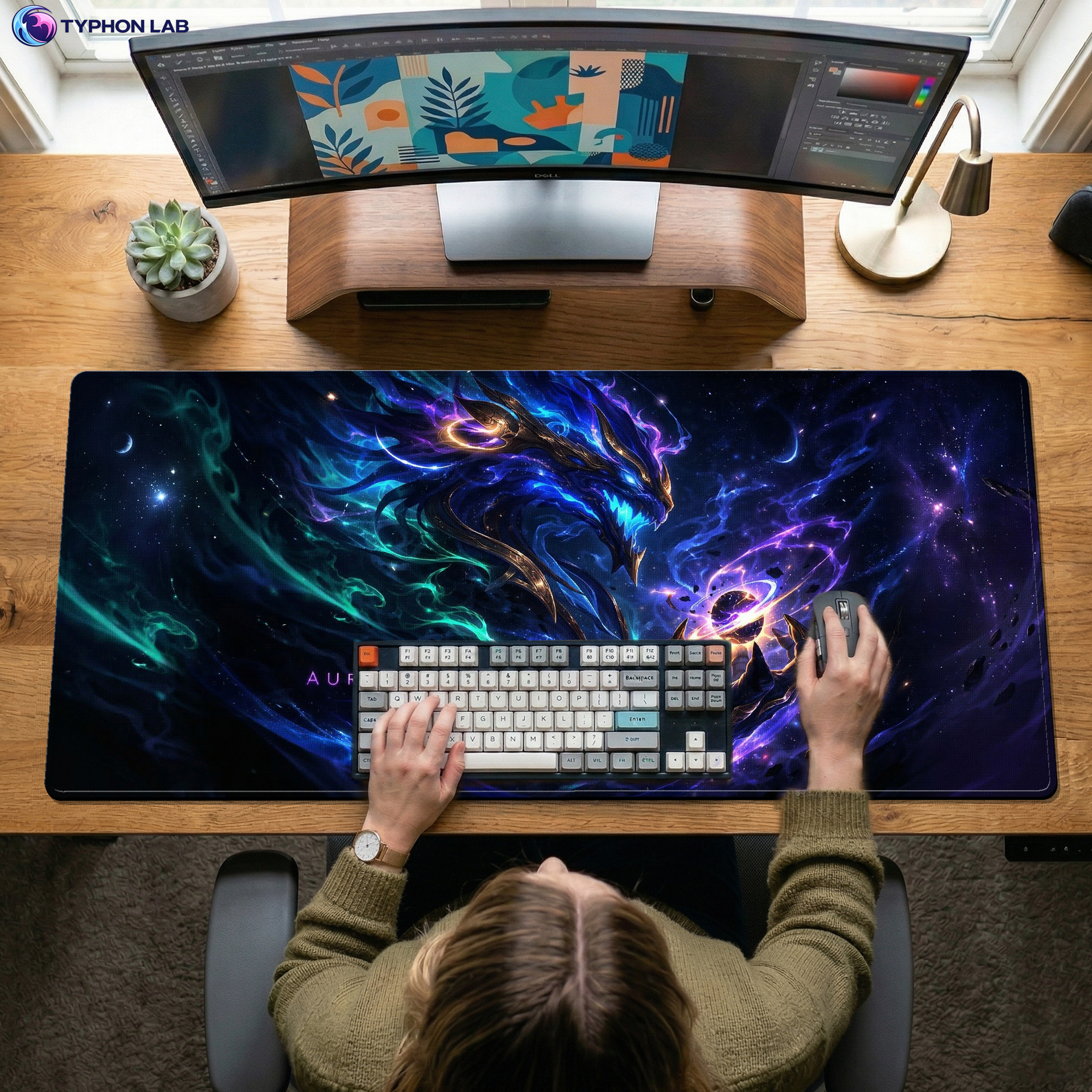 Command the stars with this breathtaking Aurelion Sol-inspired design from the world of League of Legends. Surrounded by swirling galaxies, radiant constellations, and celestial energy, the artwork captures the sheer cosmic dominance of the Star Forger — transforming your desk into a universe of power.