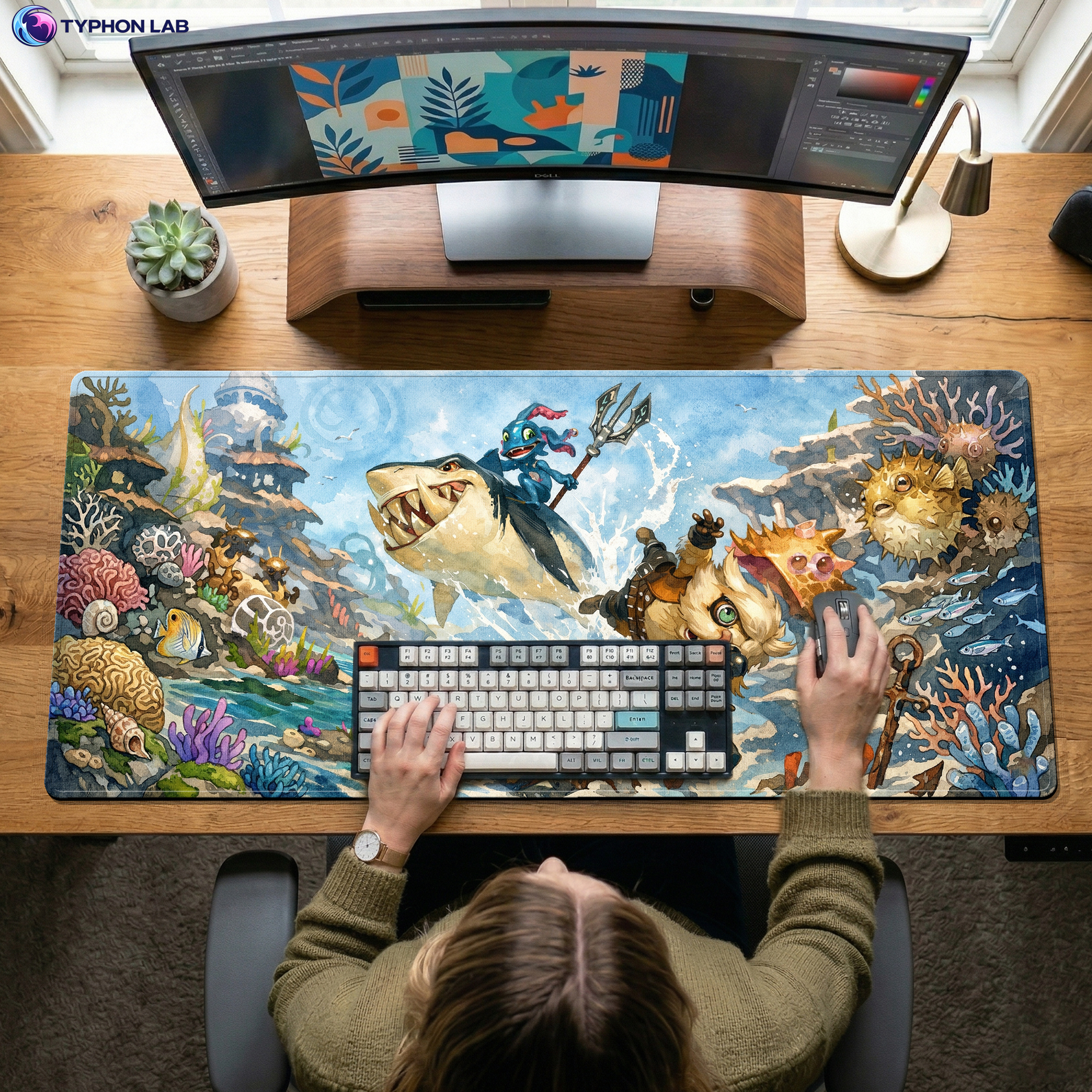 Majestic, ancient, and commanding, this Azir inspired design captures the power of a sunborn empire rising from the desert sands. Surrounded by regal gold tones, sacred symbols, and towering Shuriman guardians, the artwork brings a grand fantasy presence to your setup. The warm sandstone palette, ornate armor details, and mythic atmosphere create a bold, high-end look that instantly transforms any desk space.