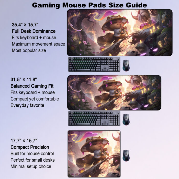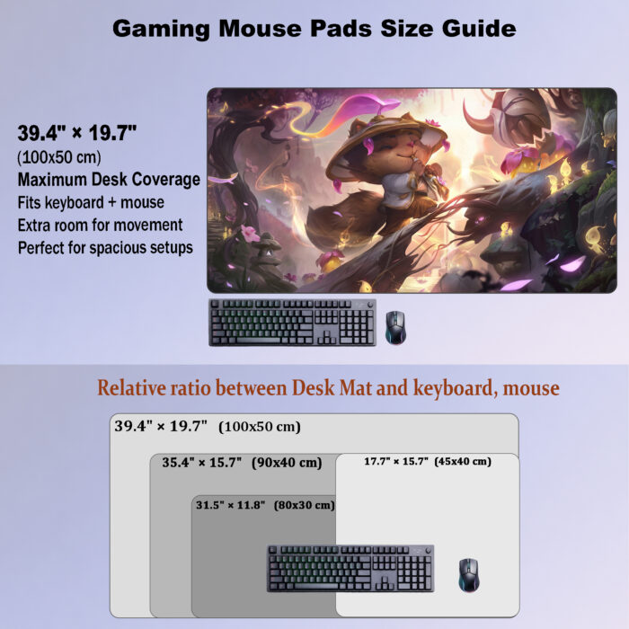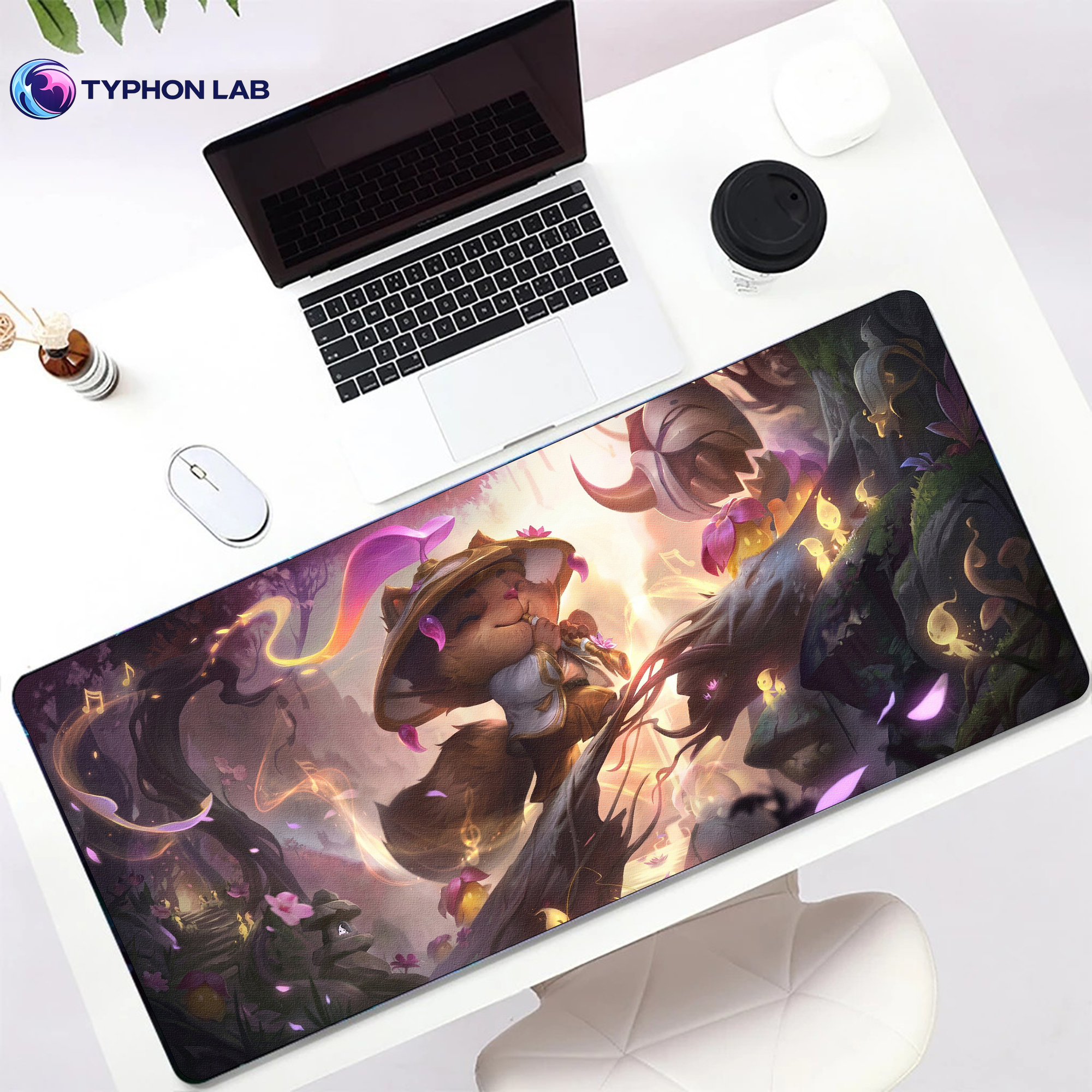 Featuring Teemo in a whimsical spirit-blossom forest scene, this desk mat brings charming champion-focused style, soft magical light, and playful fantasy energy to any setup.