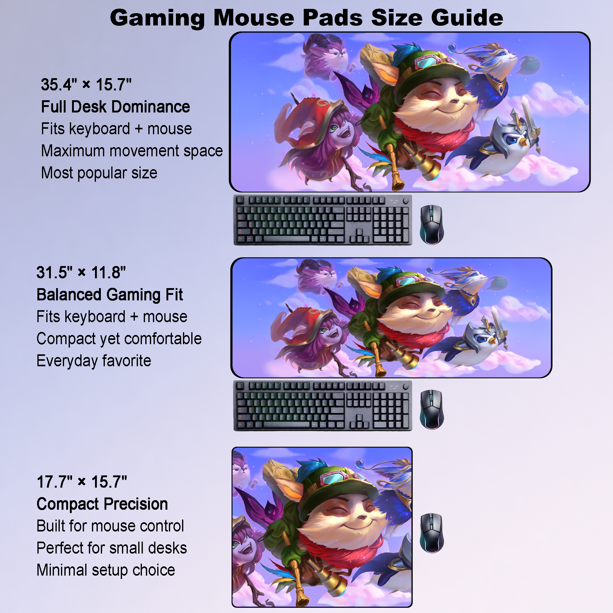 Float into a world of charm, adventure, and playful energy with this adorable Teemo-inspired design from the universe of League of Legends. Surrounded by fluffy companions, pastel skies, and dreamy fantasy details, this artwork captures Teemo’s cheerful spirit and lighthearted mischief — turning your desk into a bright and whimsical battlefield.