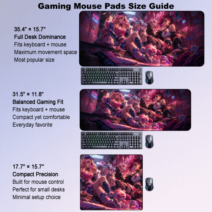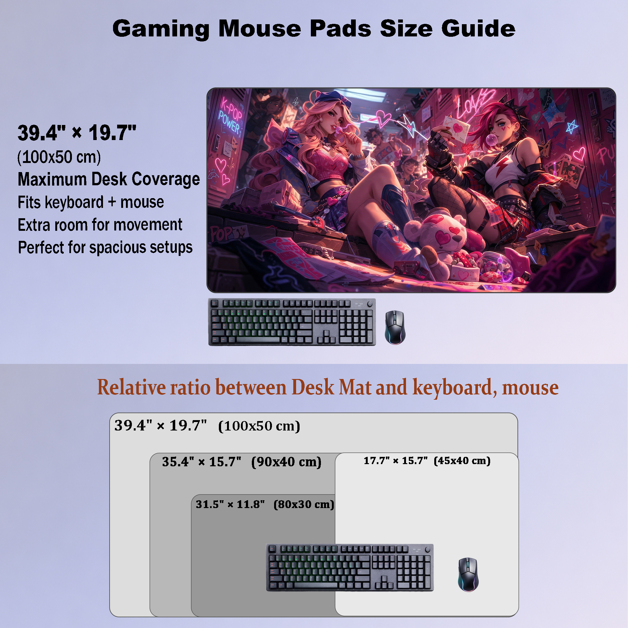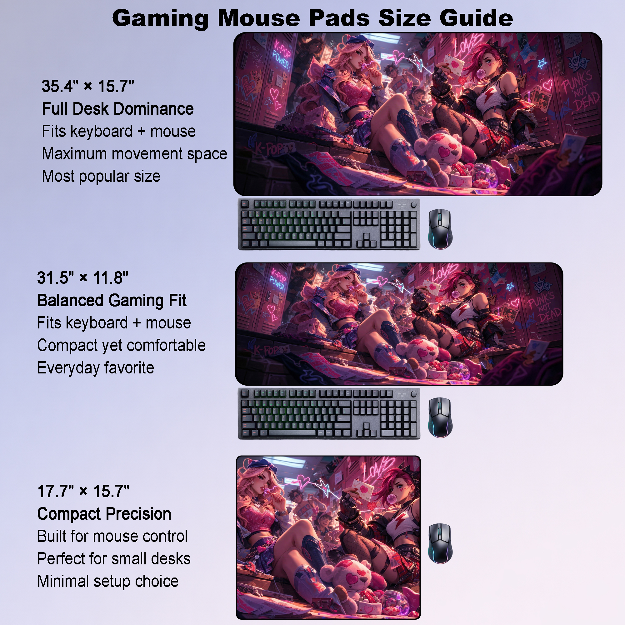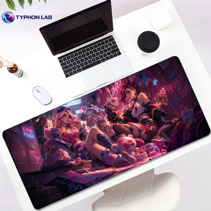 Bold, stylish, and full of attitude, this Vi and Caitlyn-inspired design features the iconic duo in a vibrant neon setting with punk fashion, playful details, and a lively street-inspired vibe. The pink and purple tones create a fun, eye-catching look for any desk setup.