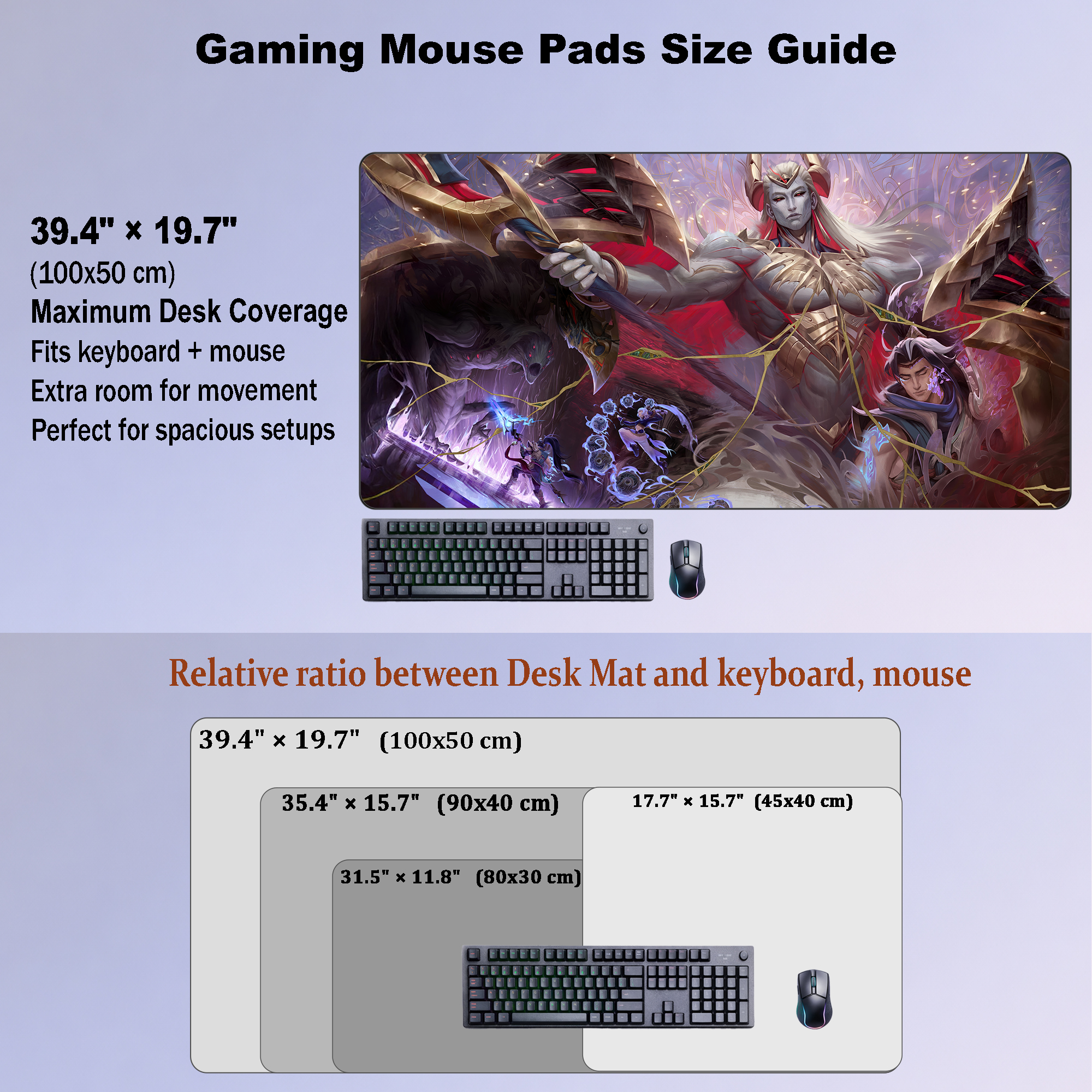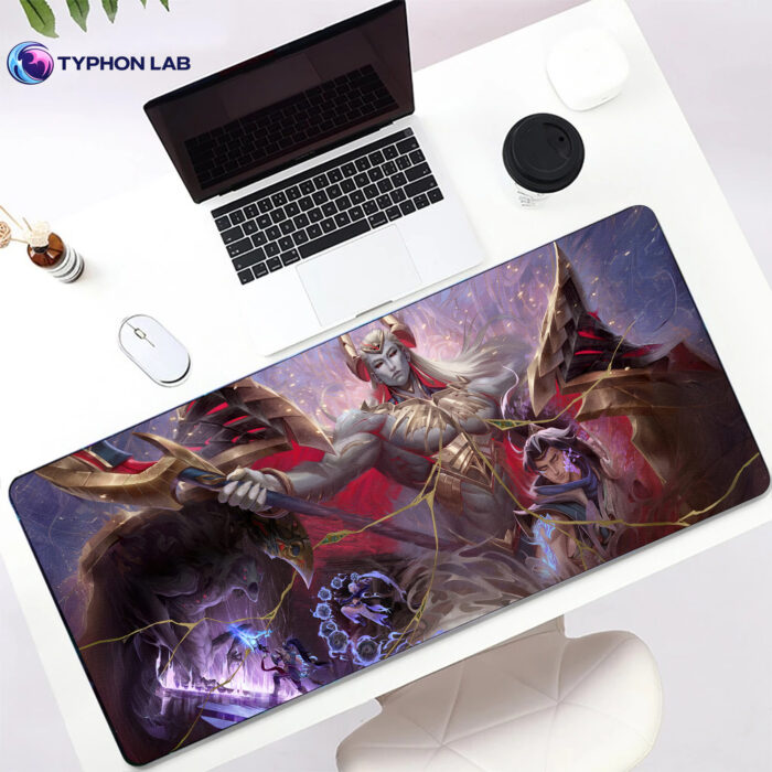 Bring legendary energy to your setup with this Zaahen, Xin Zhao, and Yunara-inspired mouse pad design. With bold fantasy artwork, glowing spirit effects, and a dramatic battle-ready composition, this piece adds a striking League-themed look to any desk.